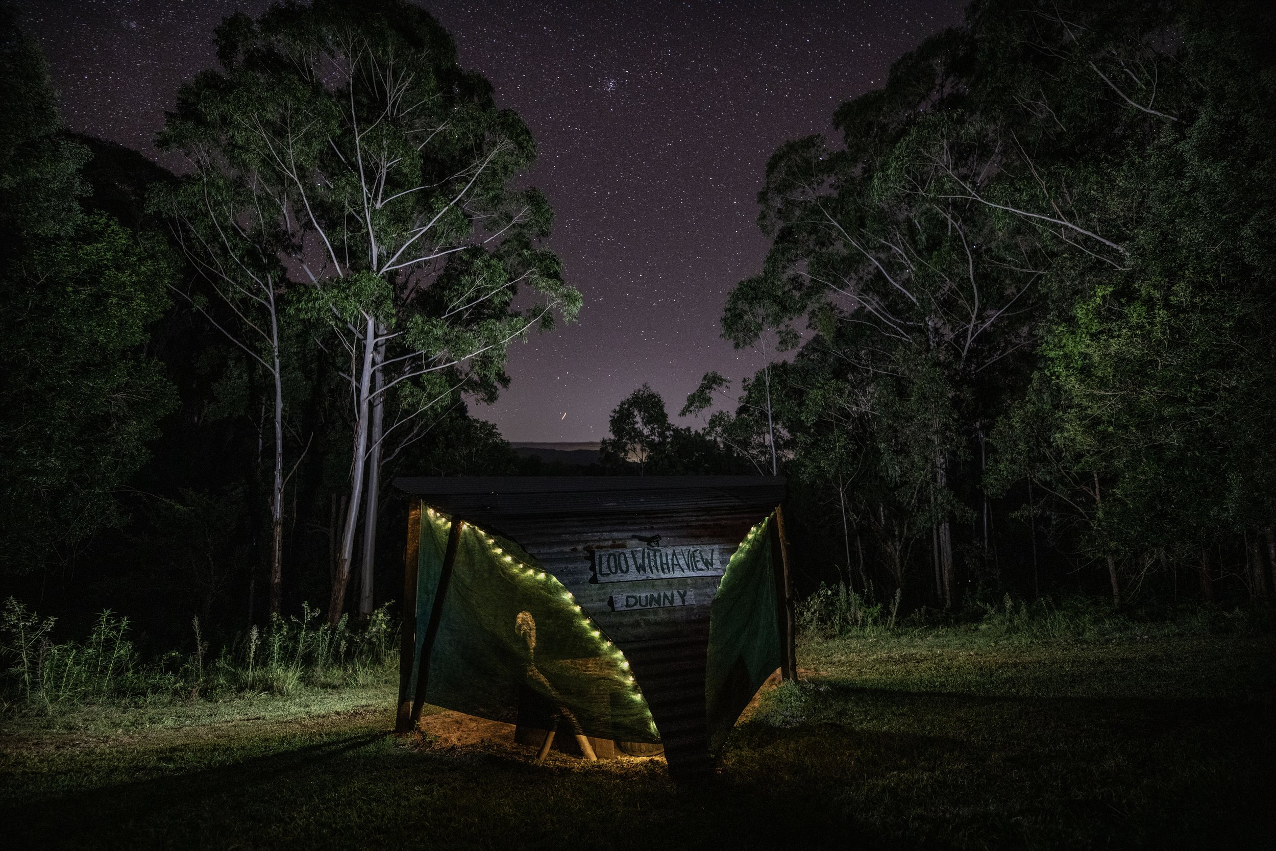 Facilities are simple, rustic, and part of the experience — including a compost toilet (the “loowithaview”), a bush kitchen with gas stove and fridge, a fire heated outdoor bath tub, and everything you need for a comfortable stay close to nature. Throughout your stay, you’re free to enjoy the space at your own pace — soak in the fire-heated outdoor bath under the stars, cook in the bush kitchen, or simply wander and take it all in.